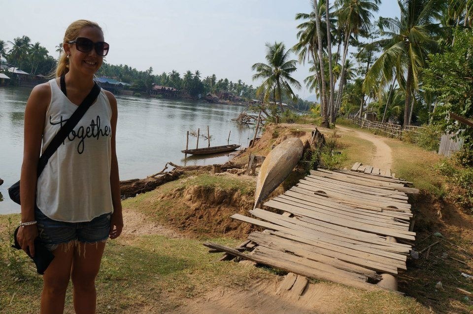 No outro dia fomos andando kms até a outra ilha Don Kong, chegando lá tivemos que pagar 25.000 kip para passar a ponte. Visitamos a cachoeira, não tivemos que pagar porque estava incluído no valor da ponte. Depois andamos 6 kms até o lugar que haviam barcos para ver os famosos golfinhos de água doce. Estávamos em 3 (com nossa amiga mexicana Eva) e pagamos 20.000 kip cada e fomos de barquinho até a fronteira com Camboja e vimos os golfinhos.